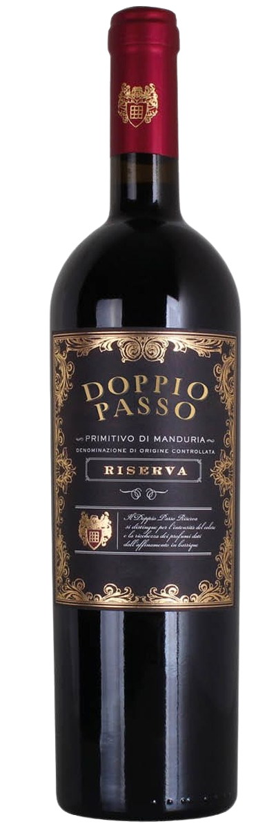 Doppio Passo Riserva to włoskie, wytrawne czerwone wino z apelacją D.O.C., produkowane w regionie Puglia. Wysokiej jakości wino, powstaje w 100% z wyselekcjonowanych winogron szczepu Primitivo.