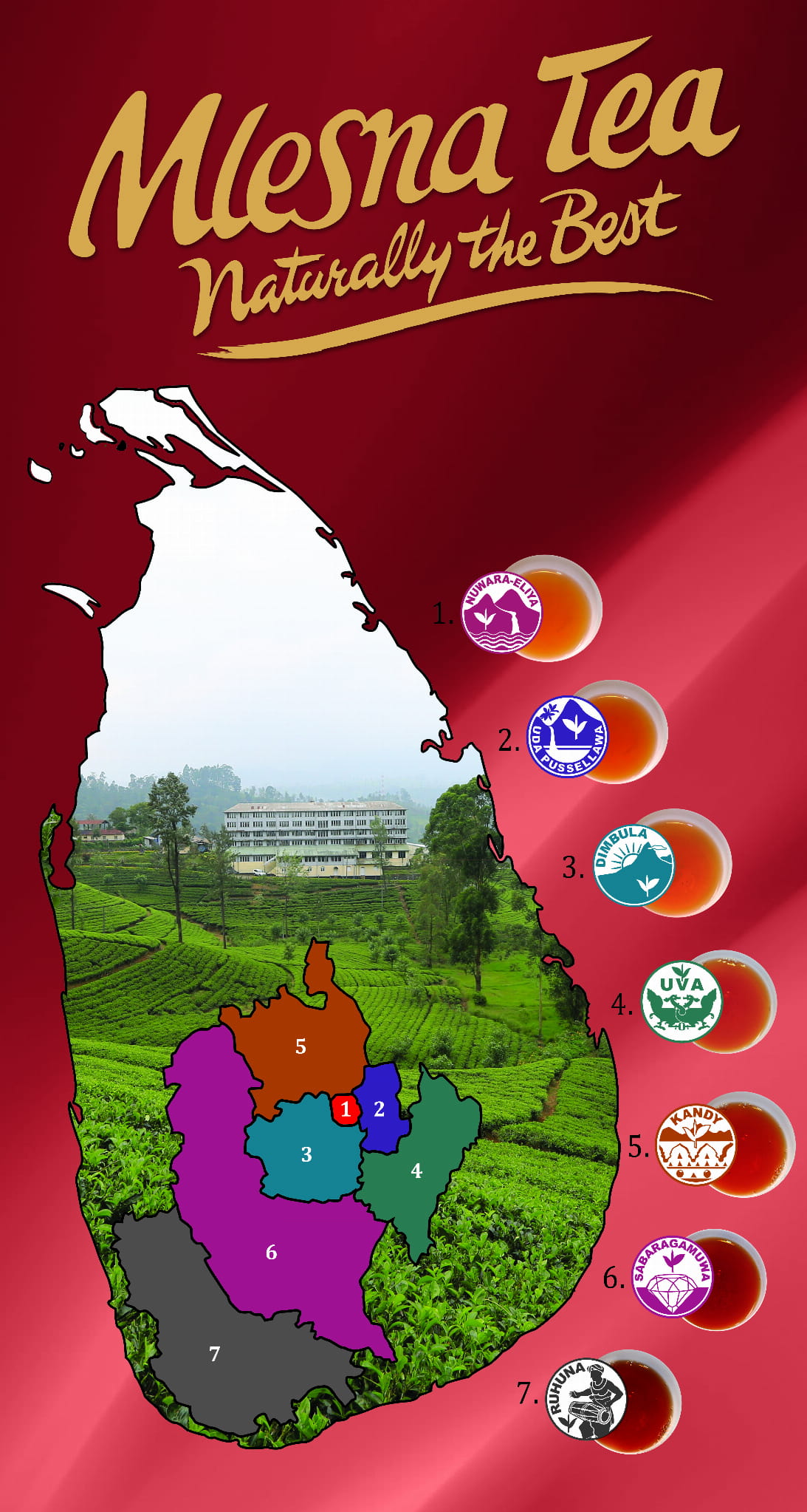 Cejlońska czarna herbata liściasta Dimbula.Uprawiana na wysokości 1700 m.n.p.m. Herbaty z tego regionu odznaczają się mocnymi naparami o intensywnym aromacie i świeżym orzeźwiającym smaku.